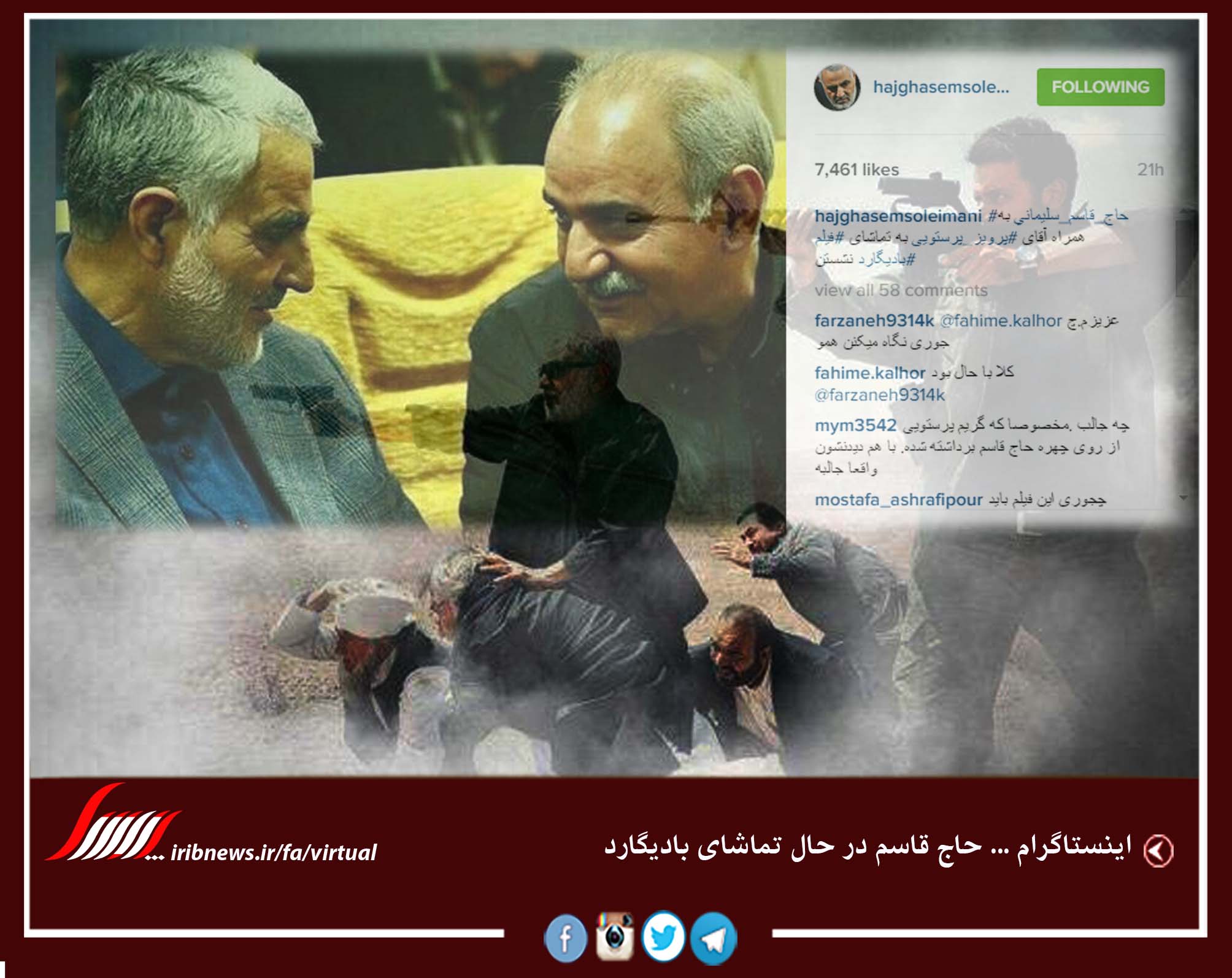 اینستاگرام ... حاج قاسم در حال تماشای بادیگاردحاج قاسم سلیمانی فرماندهی سپاه قدس به همراه پرویز پرستویی بازیگر تئاتر، سینما و تلویزیون به تماشای فیلم «بادیگارد» نشست که تصاویر آن در صفحه اینستاگرام سردار منتشر شده است.