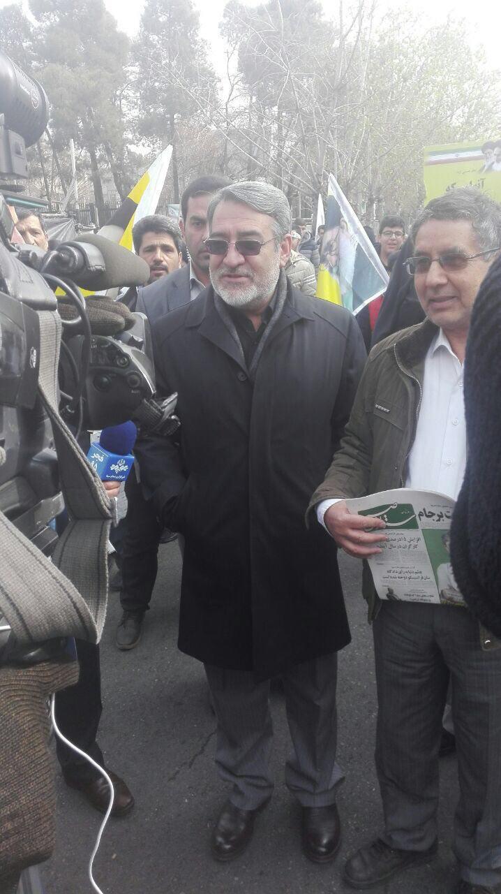 وزیر کشور با حضور در جمع راهپیمایان 22 بهمن در مصاحبه با خبرنگار خبرگزاری صدا و سیما گفت: ما اکنون مستقل ترین کشور جهان هستیم و به سوی تحقق آرمان ها و اهداف نظام مان در حال حرکت هستیم.