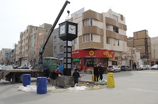 به منظور زیباسازی فضای دیداری شهر و استقبال از نوروز، عملیات زیر ساختی جهت نصب و راه اندازی ۴ دستگاه ساعت شهری در نقاط مختلف شهر به پایان رسید.