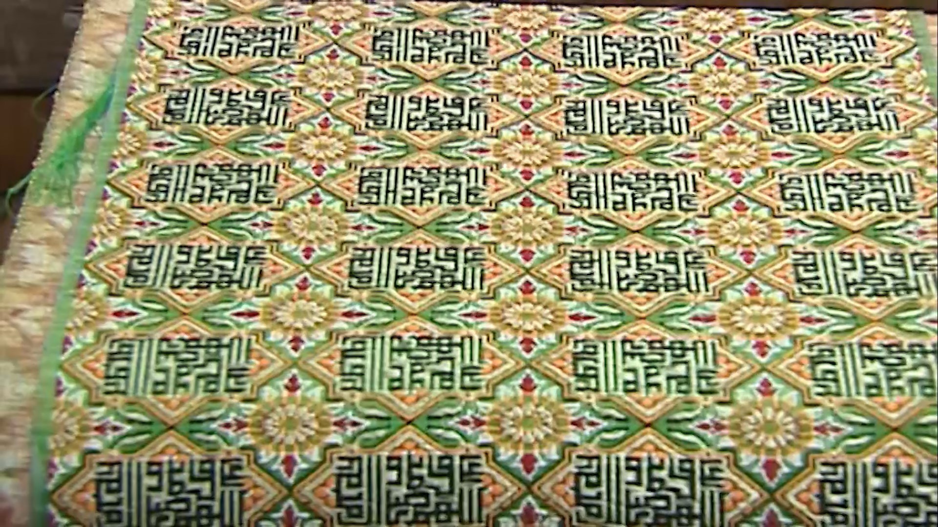 محمد بینوا با اشاره به اینکه نقشه این پارچه اسلیمی و دارای ذکر صلوات به خط کوفی بنایی است، افزود:در تار و پود این پارچه صددرصد ابریشم طبیعی به همراه گلابتون استفاده شده است.