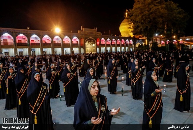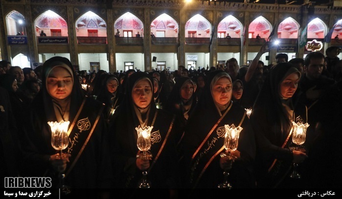 لاله گردانی خدام آستان مقدس حضرت شاهچراغ(ع) در شام غریبان شهدای کربلا