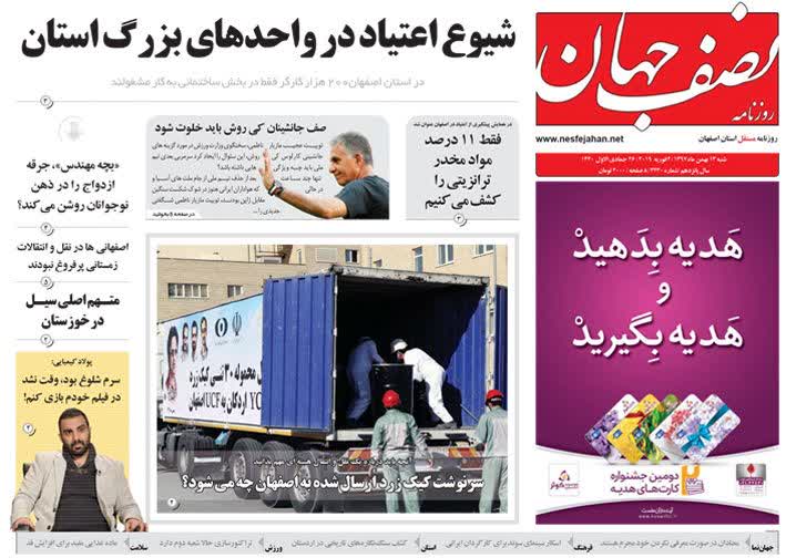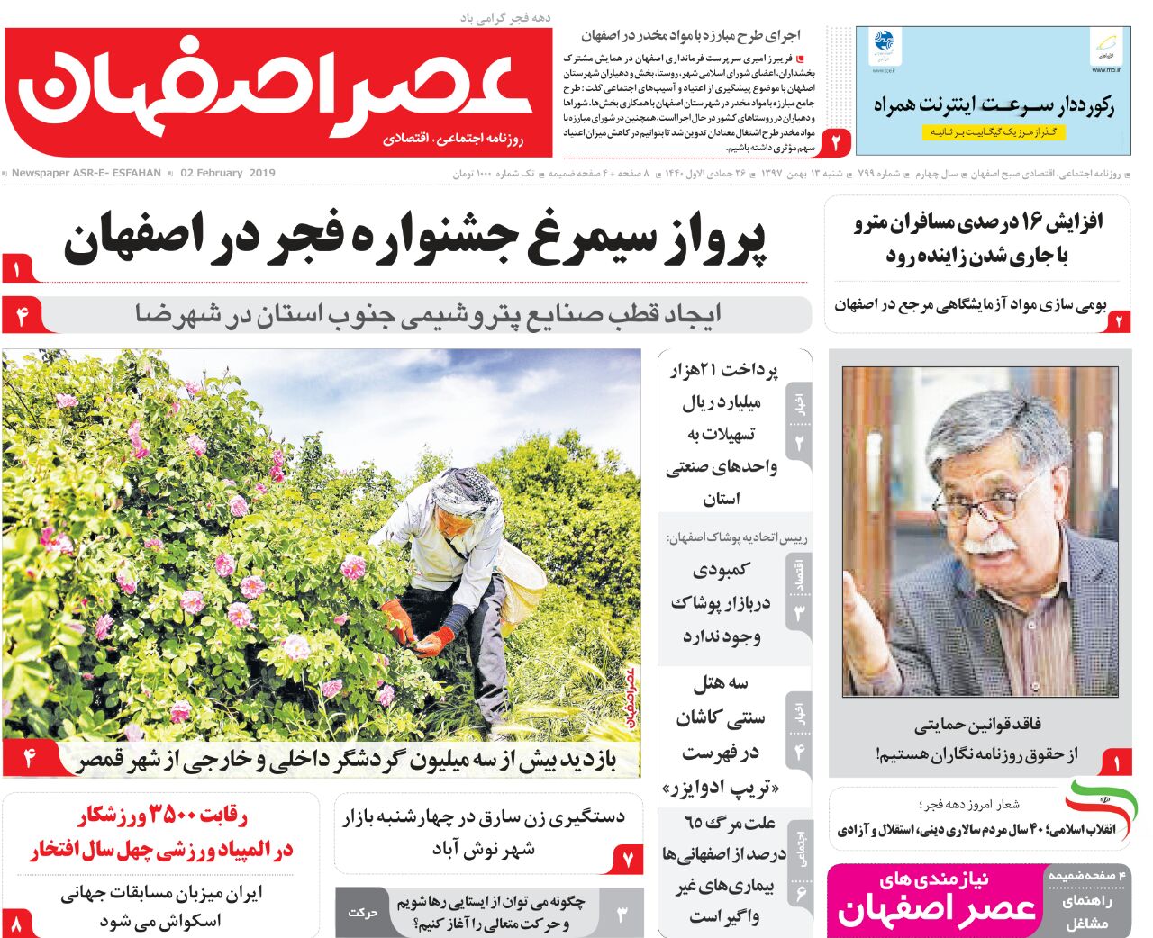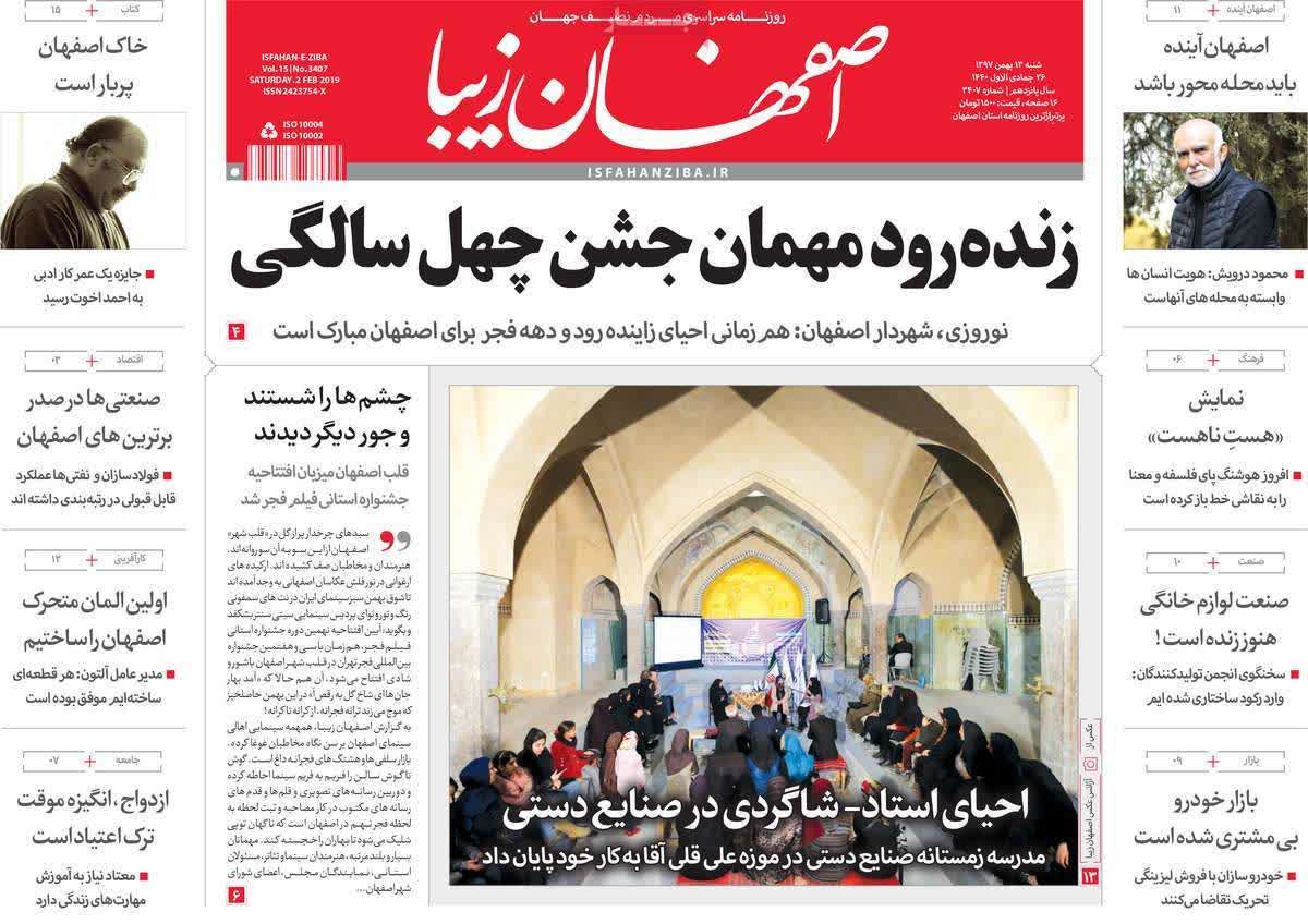 پرواز سیمرغ جشنواره فجر در اصفهان ، هشدار در خصوص کندوکاوهای تپه اشرف و جشن آب در روستاها تیتر درشت برخی روزنامه های امروز استان اصفهان است.