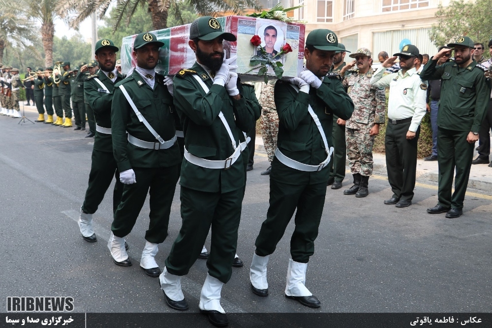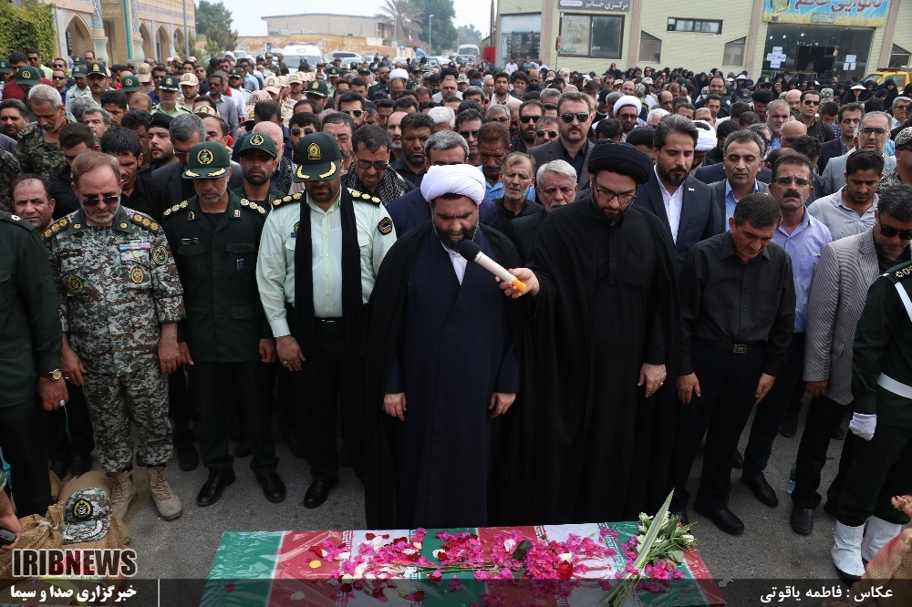 پیکر شهید مدافع میهن سردار ابراهیم غلامی با حضور مردم ولایتمدار کیش تشییع شد.