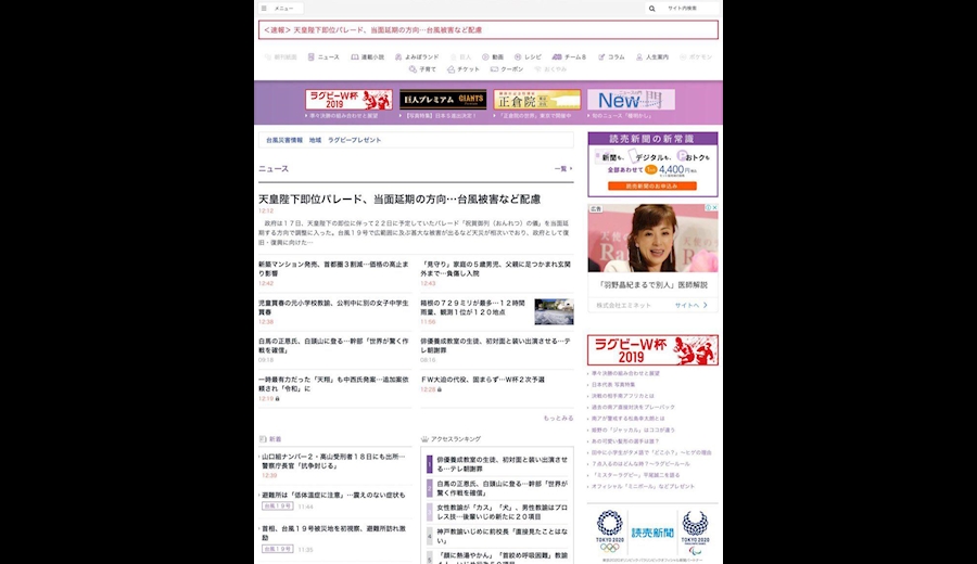 - احتمال لغو رژه در مراسم تاجگذاری امپراتور ژاپن به احترام آسیب دیدگان طوفان و سیل اخیر.