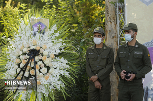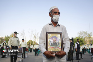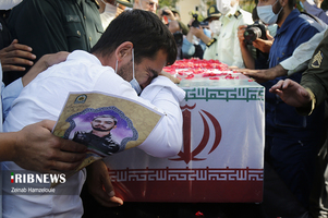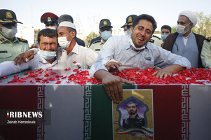 گروه عکس خبرگزاری صداوسیما : پیکر سرباز وظیفه عبدالجبار مختوم نژاد که در تاریخ ۹ مرداد امسال در هنگام انتقال متهم به دستگاه قضایی مورد اصابت چاقو از سوی متهم قرار گرفته بود صبح امروز در میان همرزمان، همکارانش در پلیس پیشگیری و سایر پلیسهای تخصصی و با حضور جانشین نیروی انتظامی و همچنین فرمانده انتظامی تهران بزرگ در ستاد فاتب تشییع شد. پیکر شهید بعد از مرثیه سرایی مداح اهل بیت و سخنرانی فرماندهی انتظامی تهران بزرگ بر دوش همرزمانش تشییع شد.