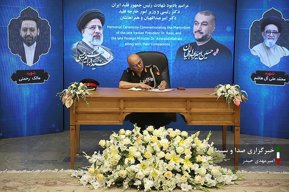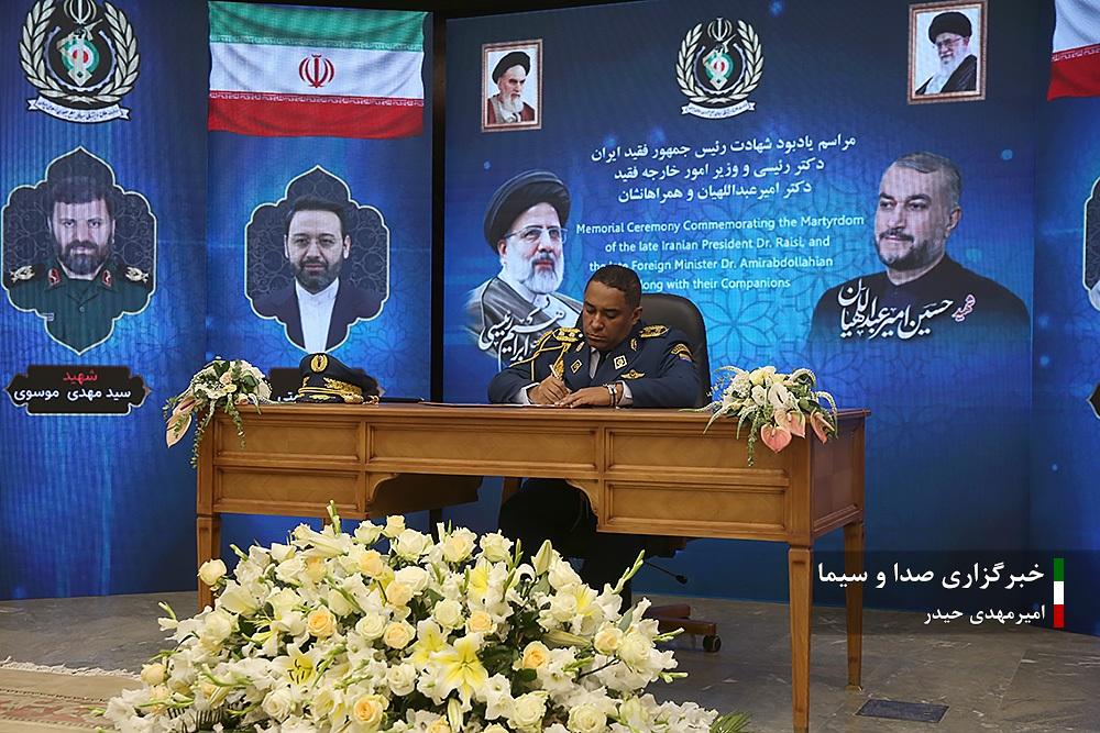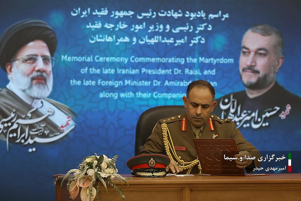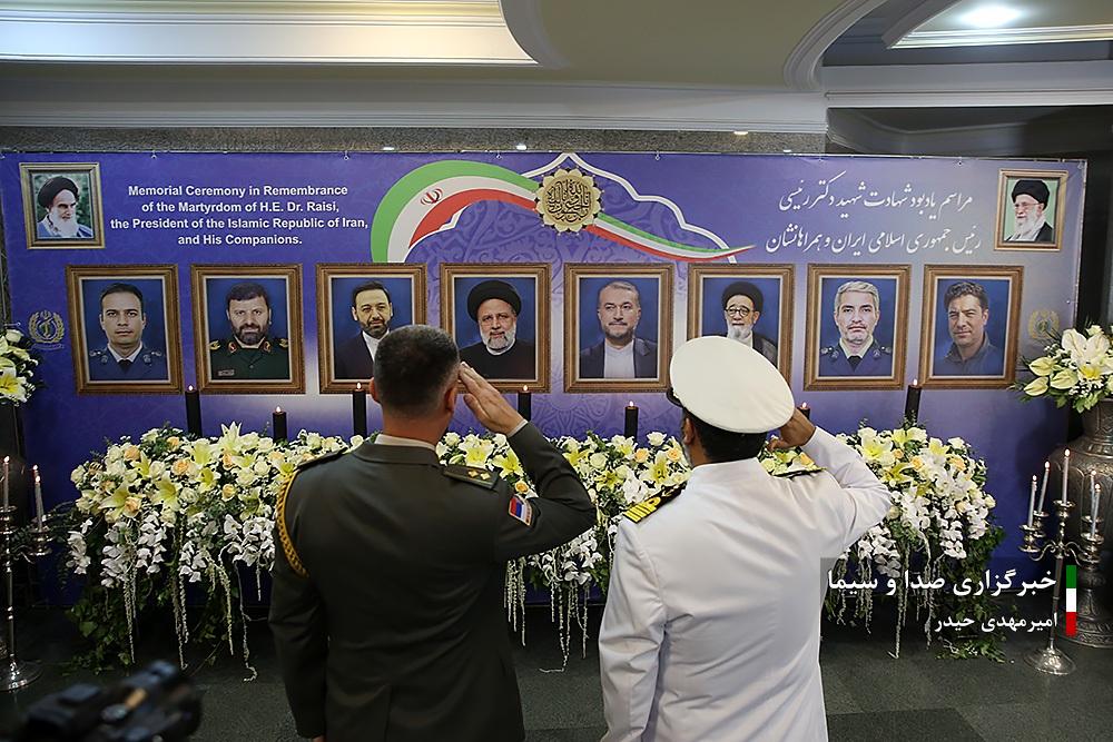 صبح امروز سه شنبه هشتم خرداد ماه ۱۴۰۳ مراسم گرامیداشت و یادبود شهید آیت الله رئیسی و همراهان ایشان، با حضور مقامات عالیرتبه نظامی و ۳۰ نفر از وابستگان نظامی مقیم تهران در محل وزارت دفاع و امور پشتیبانی، برگزار شد.