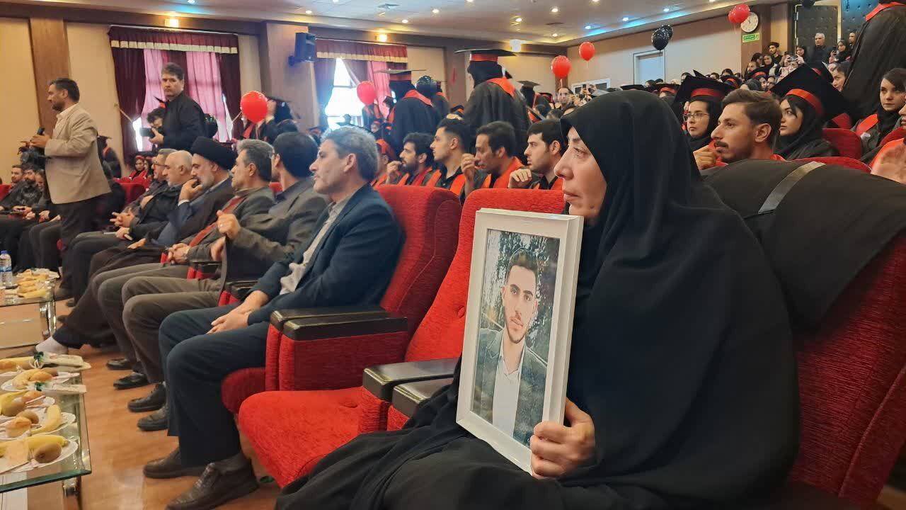 همچنین درمراسم آیین فارغ التحصیلی شهید رضا خلف خانی دانشجوی رشته مدیریت این دانشگاه که در دفاع مقدس ۱۲ روزه به فیض رفیع شهادت نائل آمده بود با حضور خانواده اش برگزار شد.